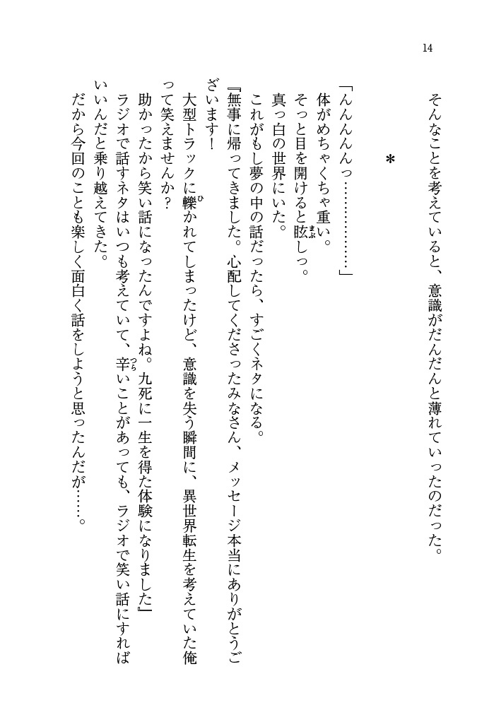日本では僕は本当にラジオに関わる仕事につけて幸せだった。だが転生した異世界にはラジオが影も形もない!! 娯楽もほとんどなく、庶民に生まれたら幼いころから生活のために働かなければならない。そんな僕ことブランチャードは、ラジオを実現させるため幼馴染たちと奮闘することに!! まずはお話会から始め、受信機を開発して──!?